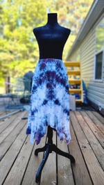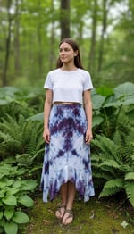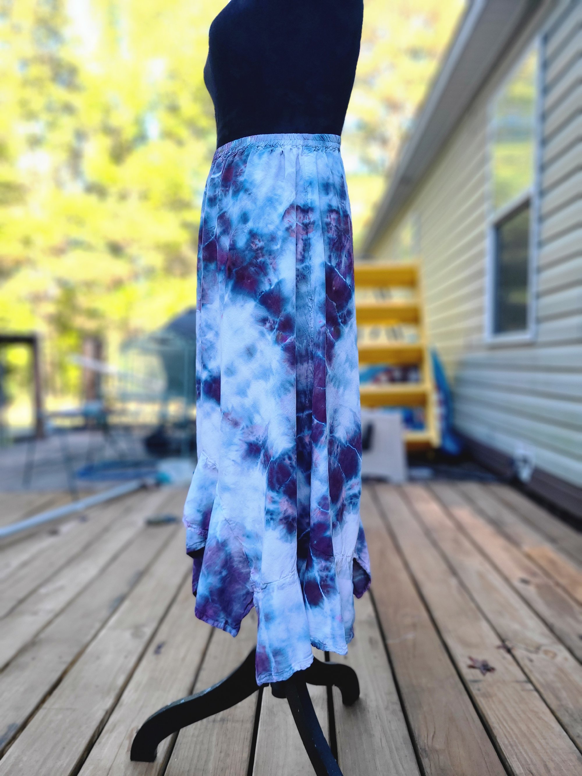 Made from 100% rayon, the 90s Denim Vibes skirt is made with a flirty hem and flounced inverted V at center front and center back.