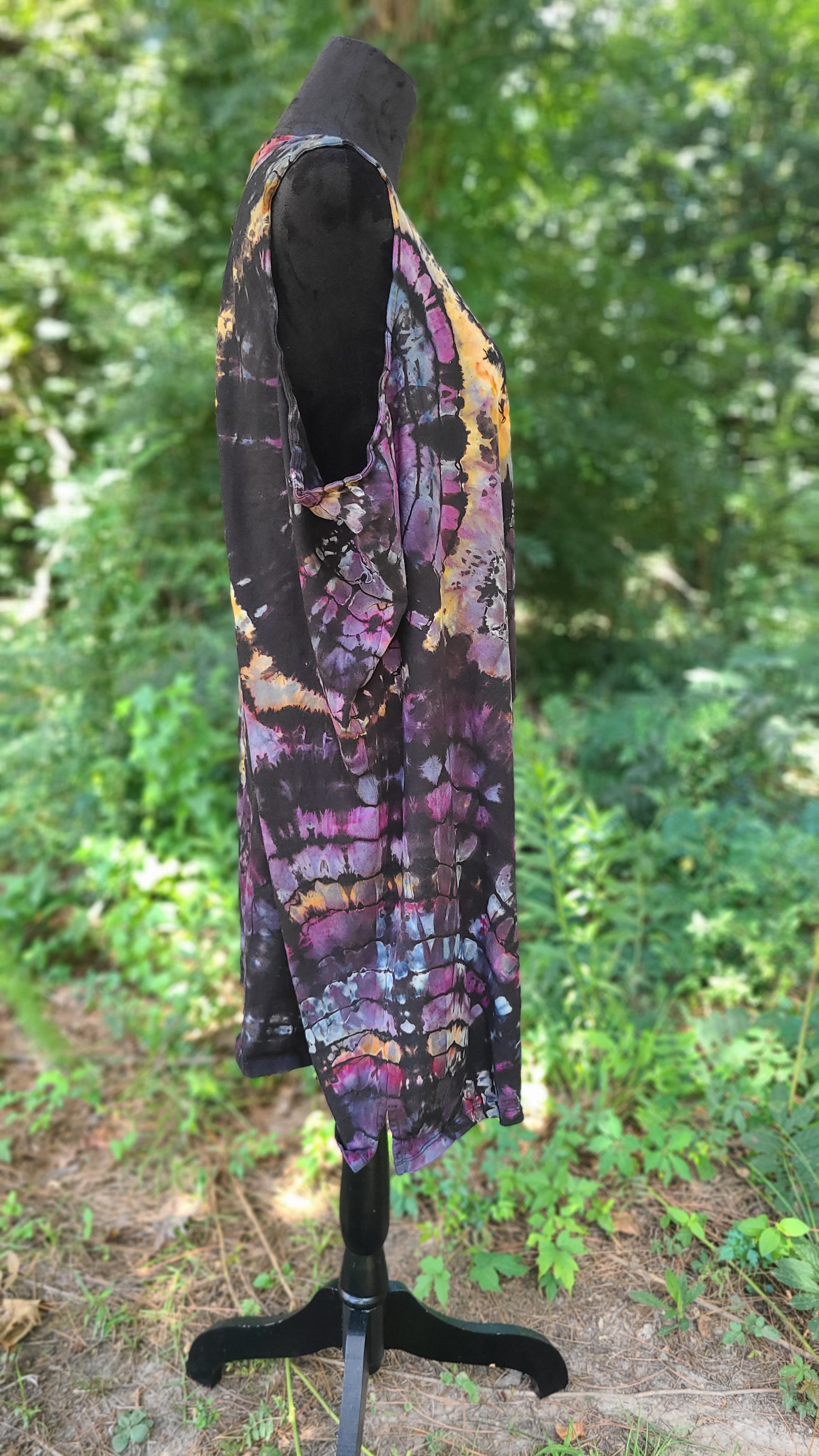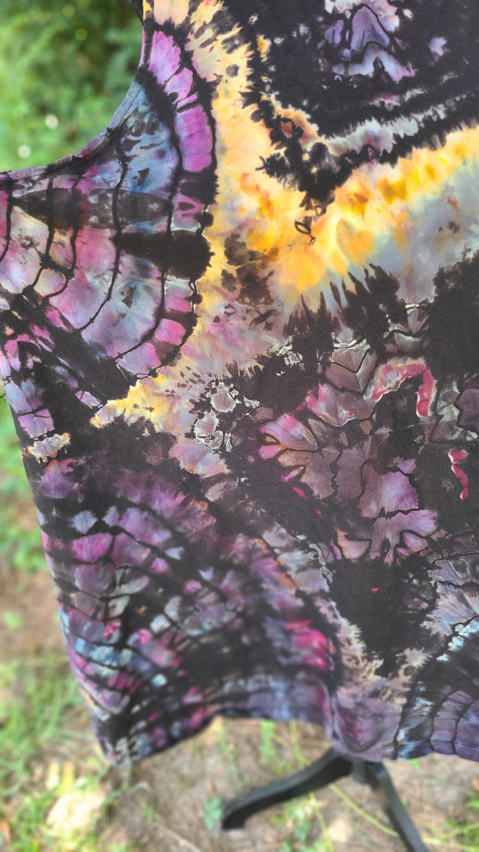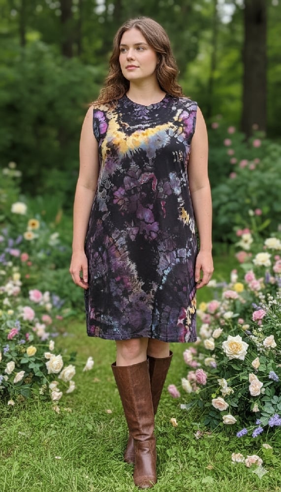 Breathe bold beauty into your wardrobe with the African Daisy Petals Sleeveless Mini Tshirt Dress. Featuring a vivid, hand-dyed design inspired by the organic shapes and striking hues of wild African daisies, this dress blends comfort and artistry effortlessly.