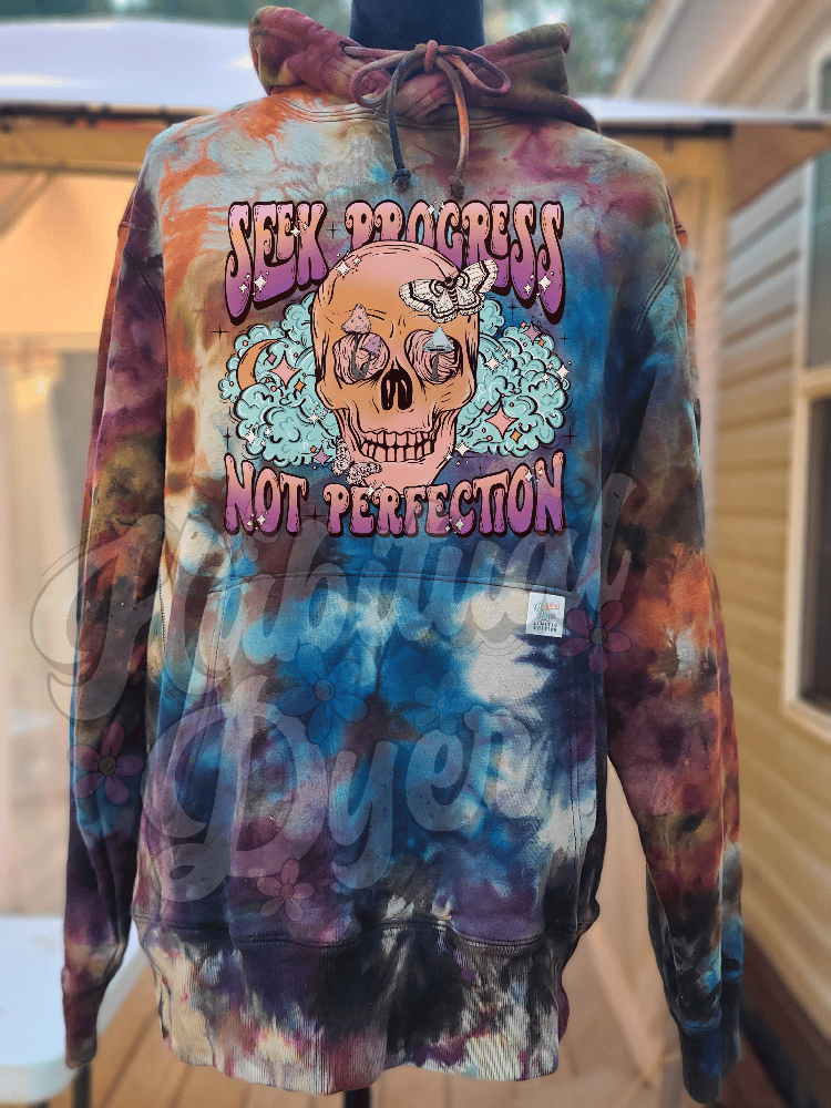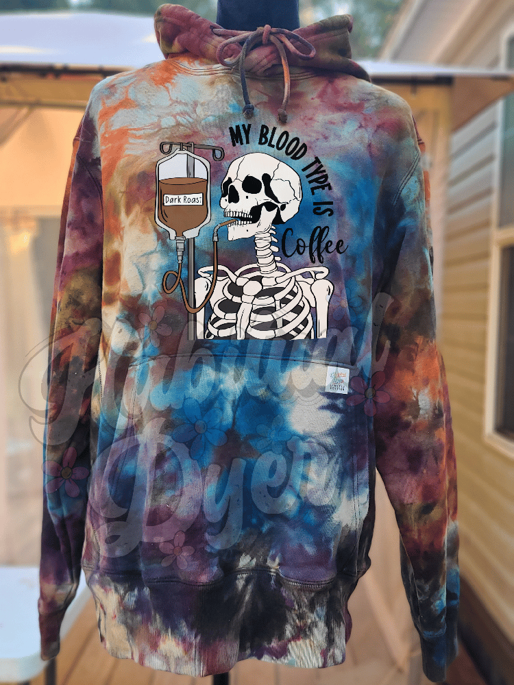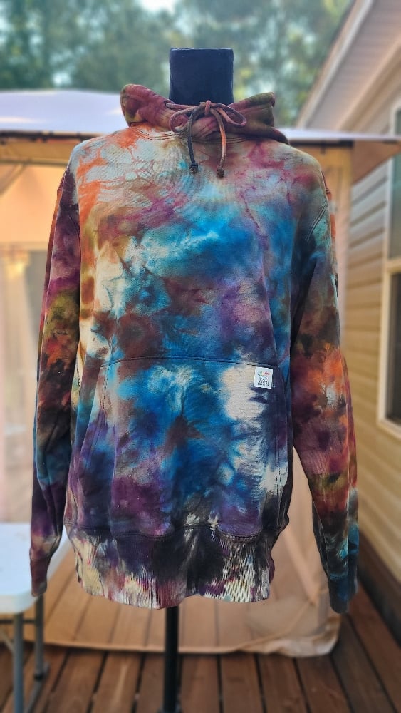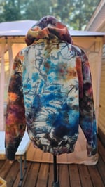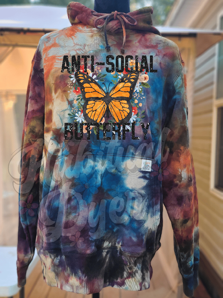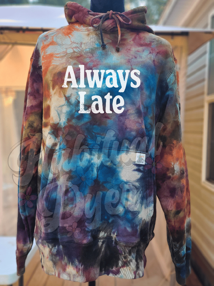 Autumn is a wearable painting—burnt orange, ember red, twilight purple, and storm-swept blue colliding in a cascade of reverse-dyed depth.