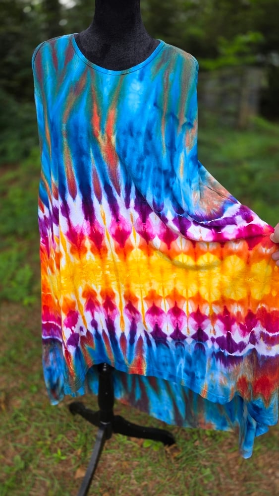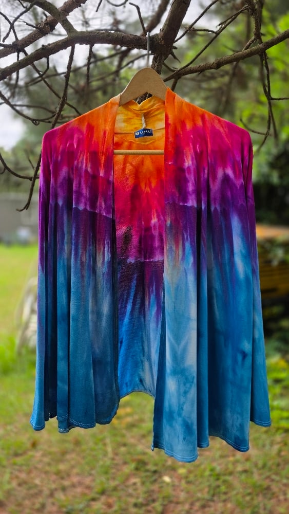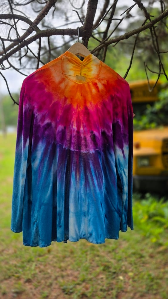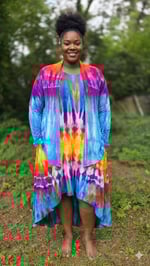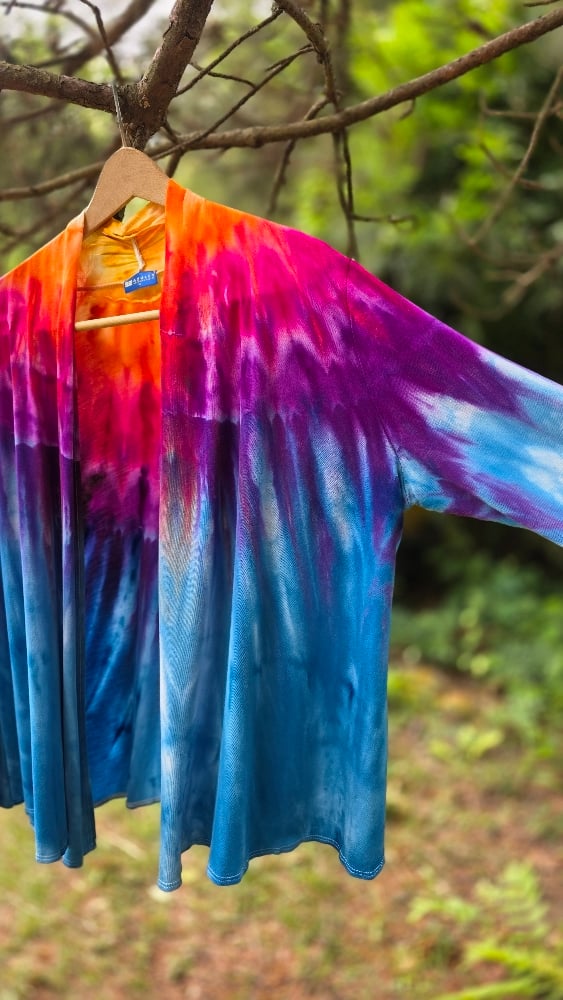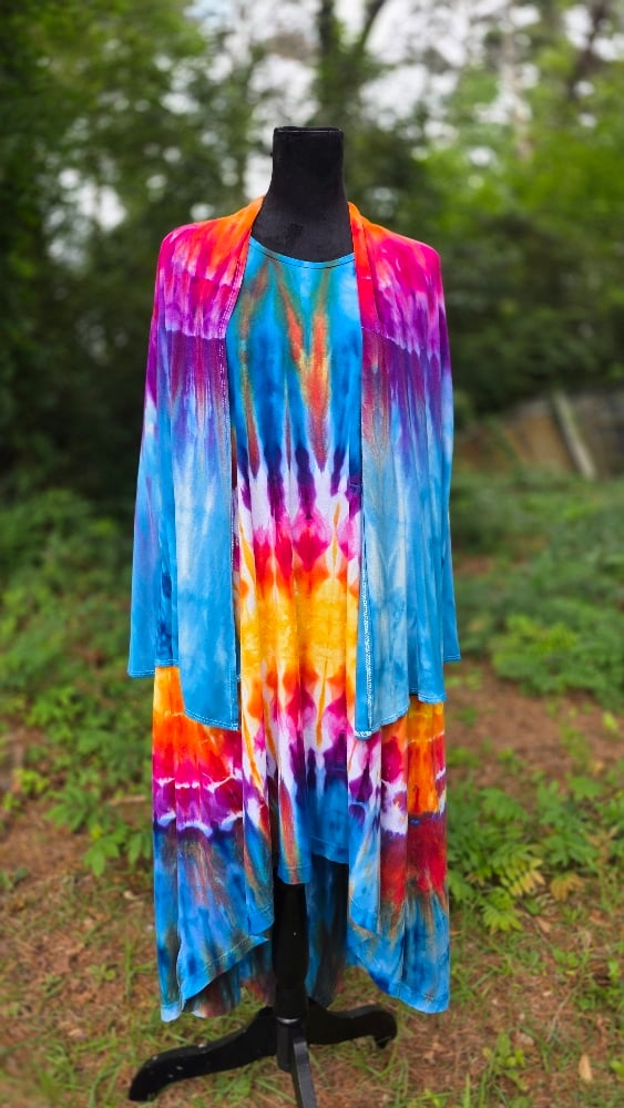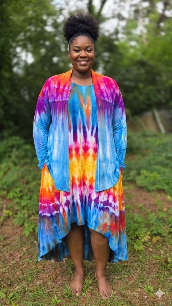 Embrace a tropical escape with the Birds of Paradise set. This stunning matching set features a vibrant, symmetrical ice-dye pattern that transitions through electric blues, deep purples, and sun-drenched oranges—mimicking the exotic plumage of its namesake.