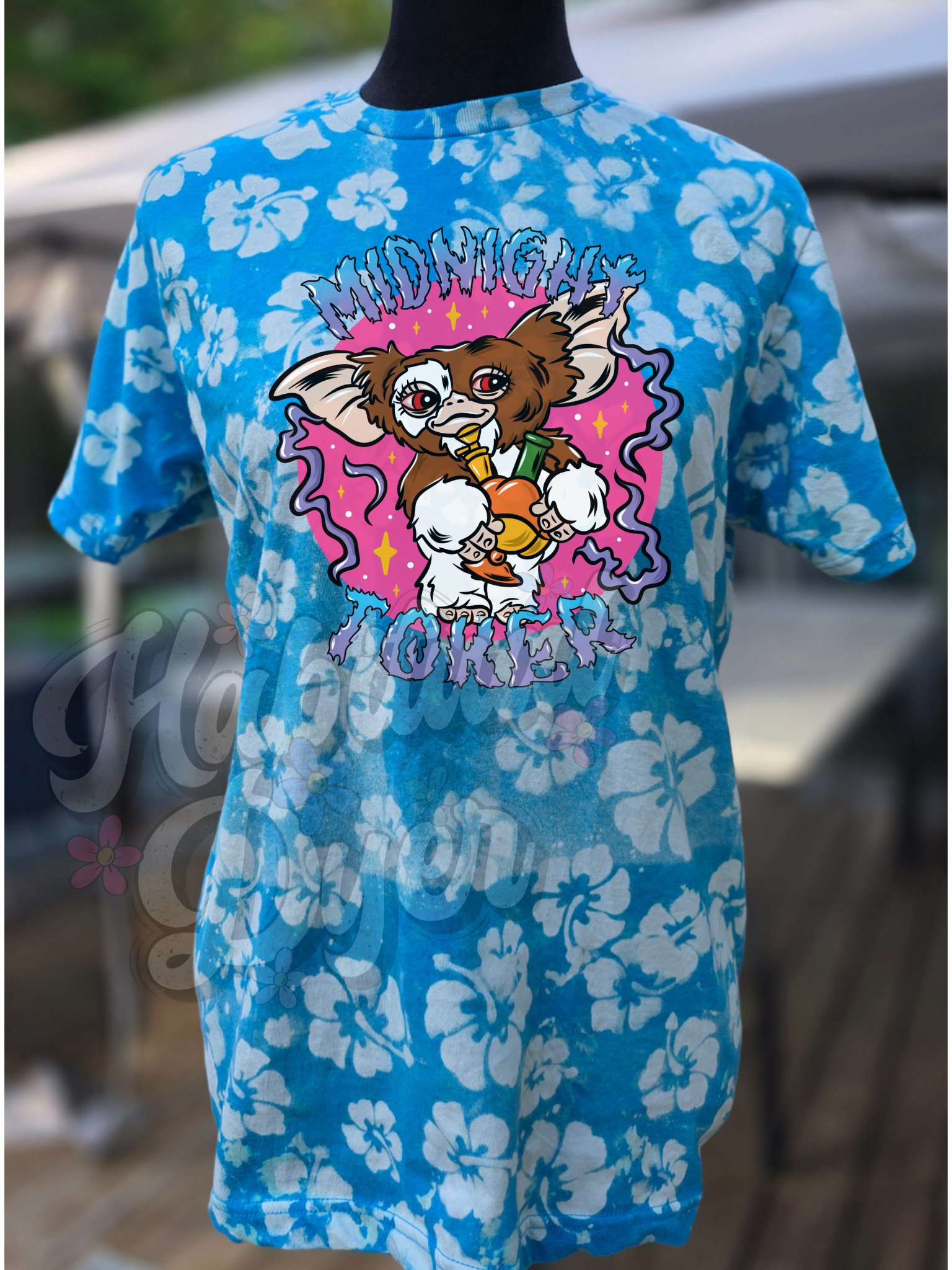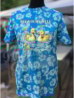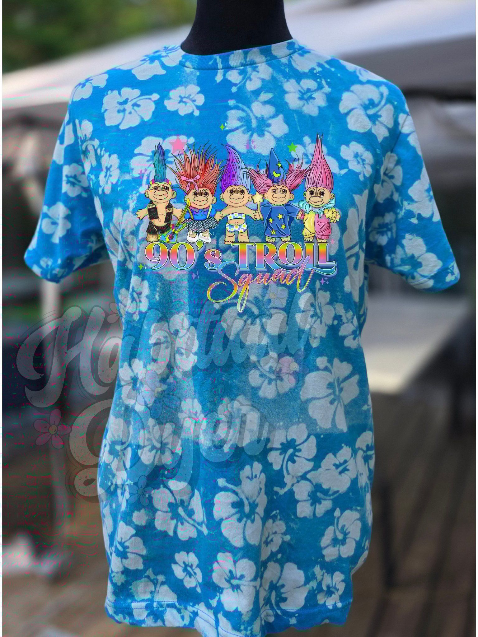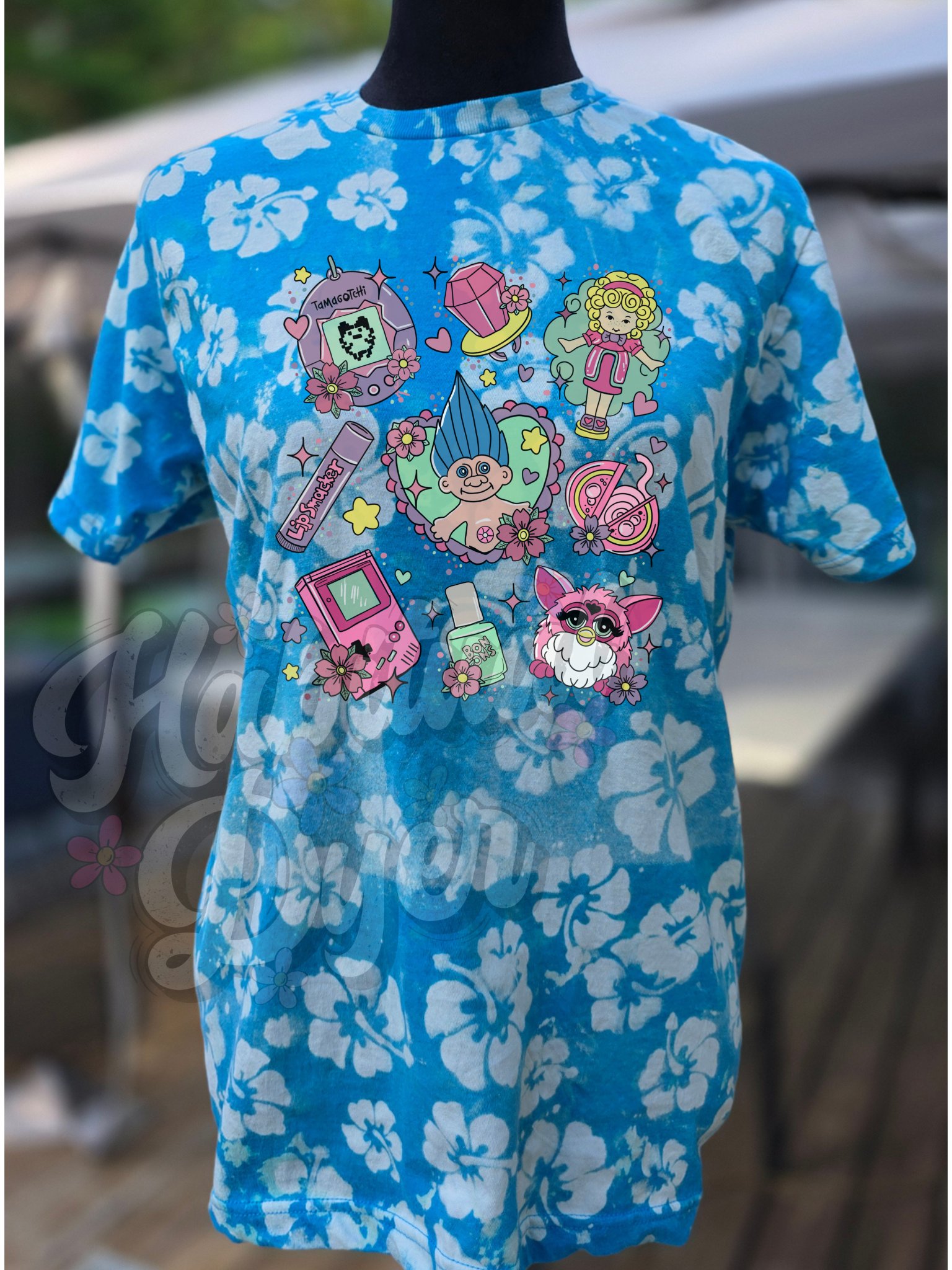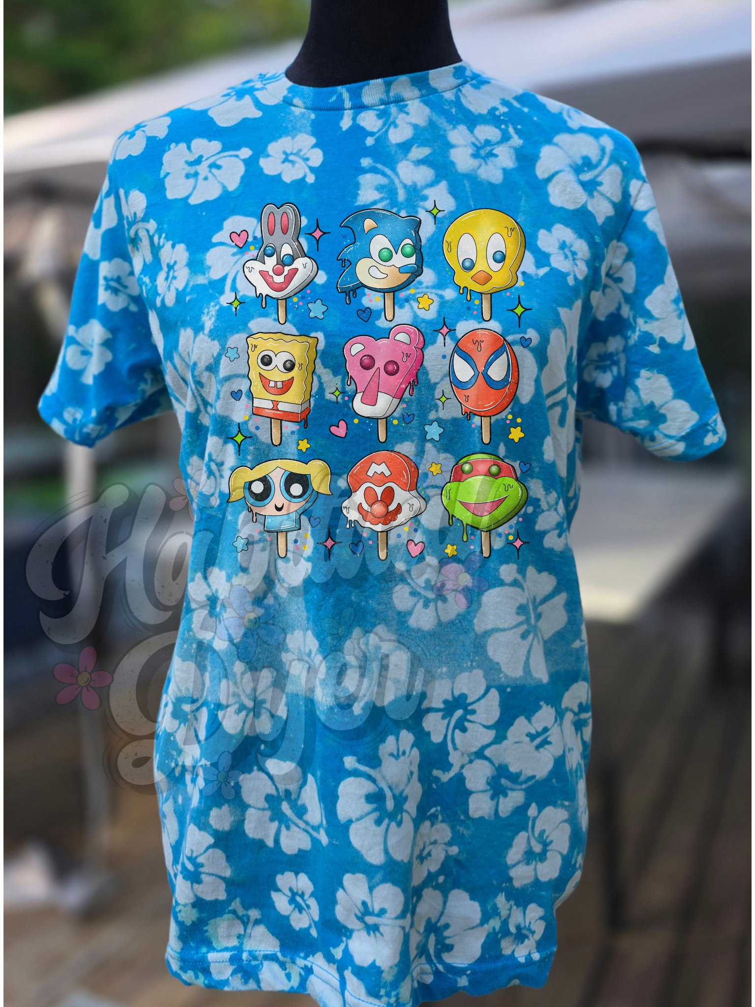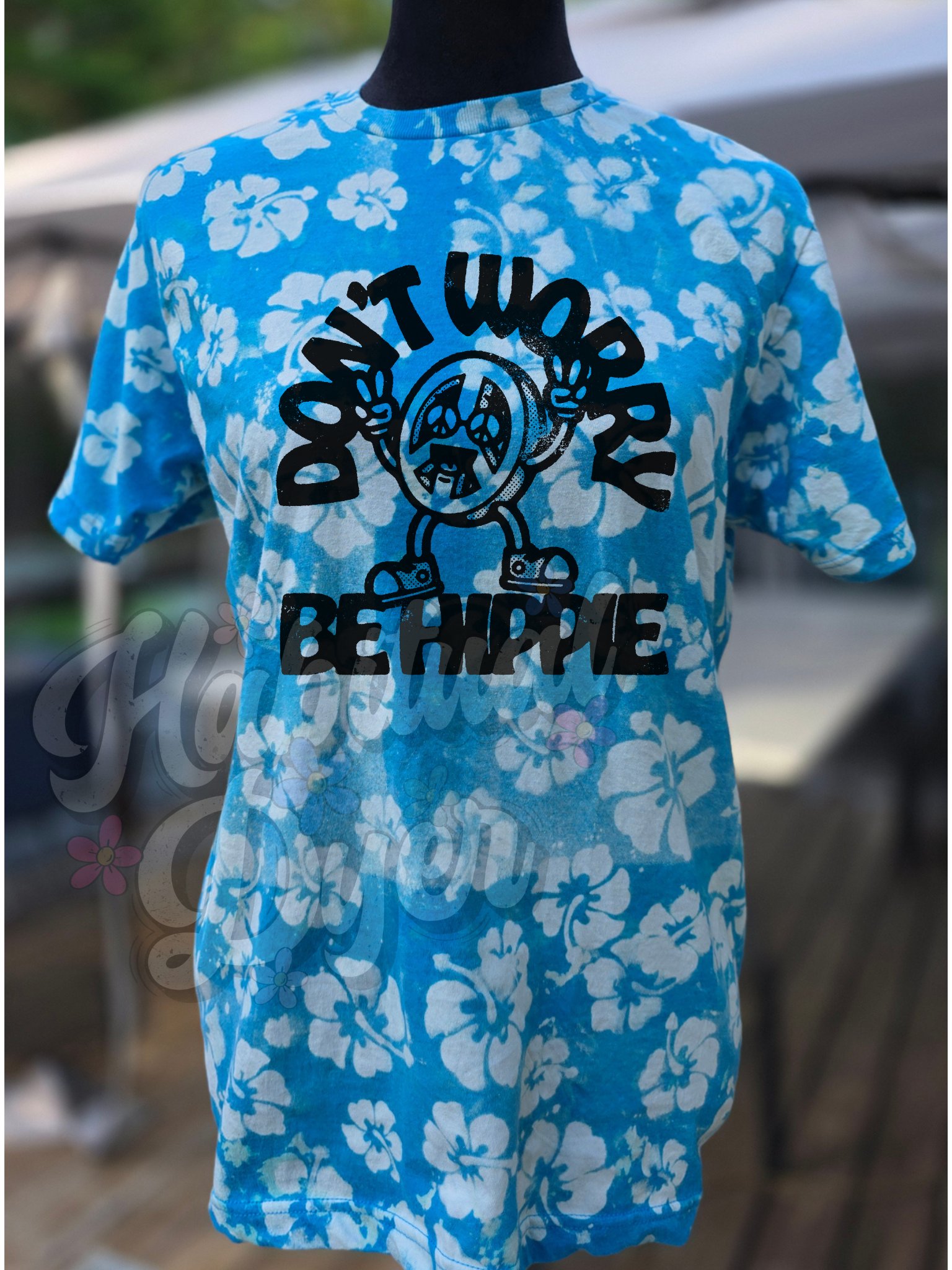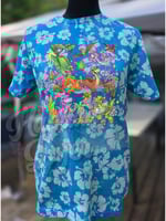 Tultex 50/50 polycotton blend tee, stencil bleached with hibiscus, unisex Medium. Leave it plain or pick a print!