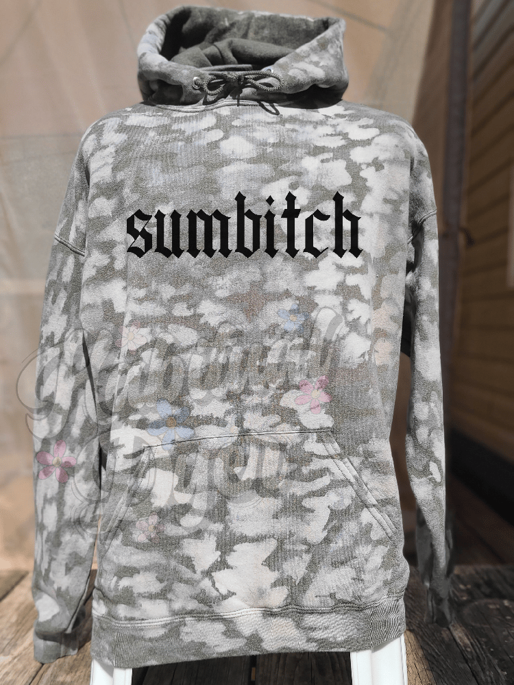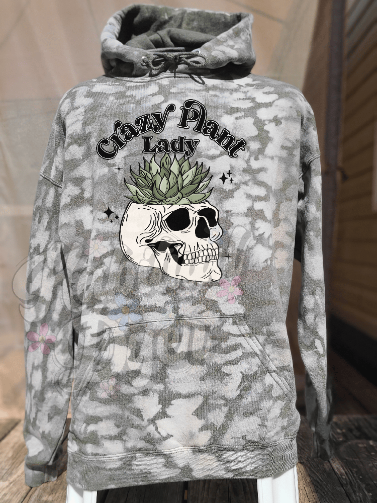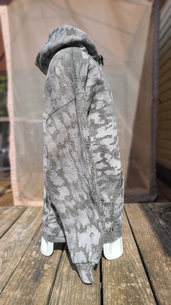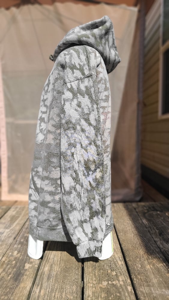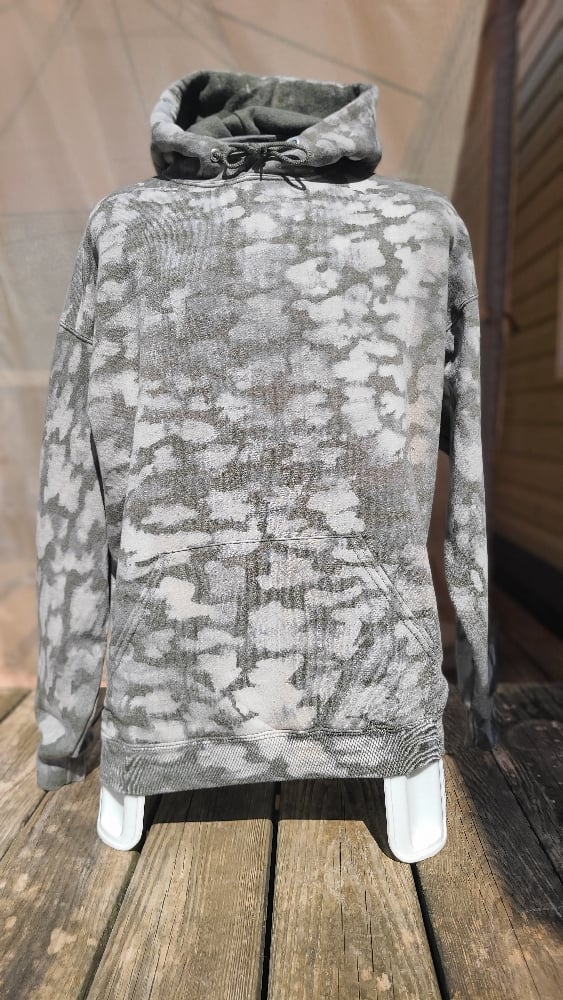 Unisex XL Jerzees brand 50/50 polycotton blend Heather Military Green hoodie bleached camo style; Keep it plain or pick a print!
