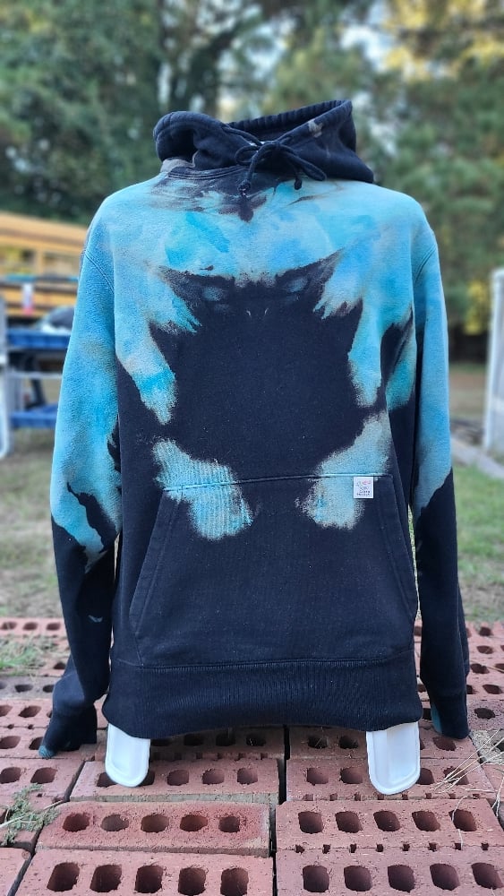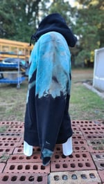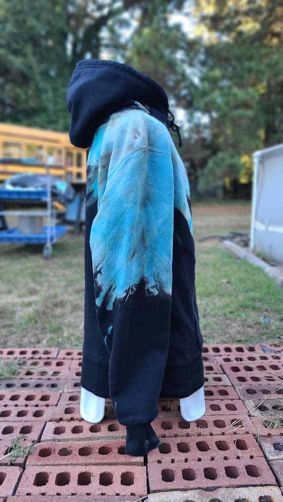 Icy calm meets quiet rebellion in this 1-of-1 reverse-dyed hoodie, where arctic blues melt into inky black shadows. Cold Shoulder captures the chill of defiance and the stillness of winter skies—each pattern unique, never to be repeated.