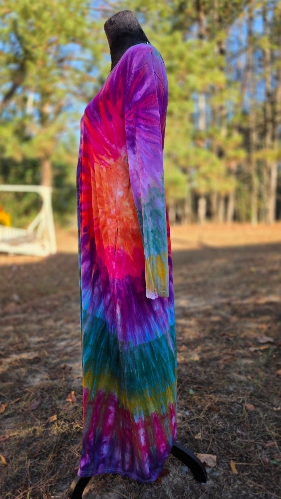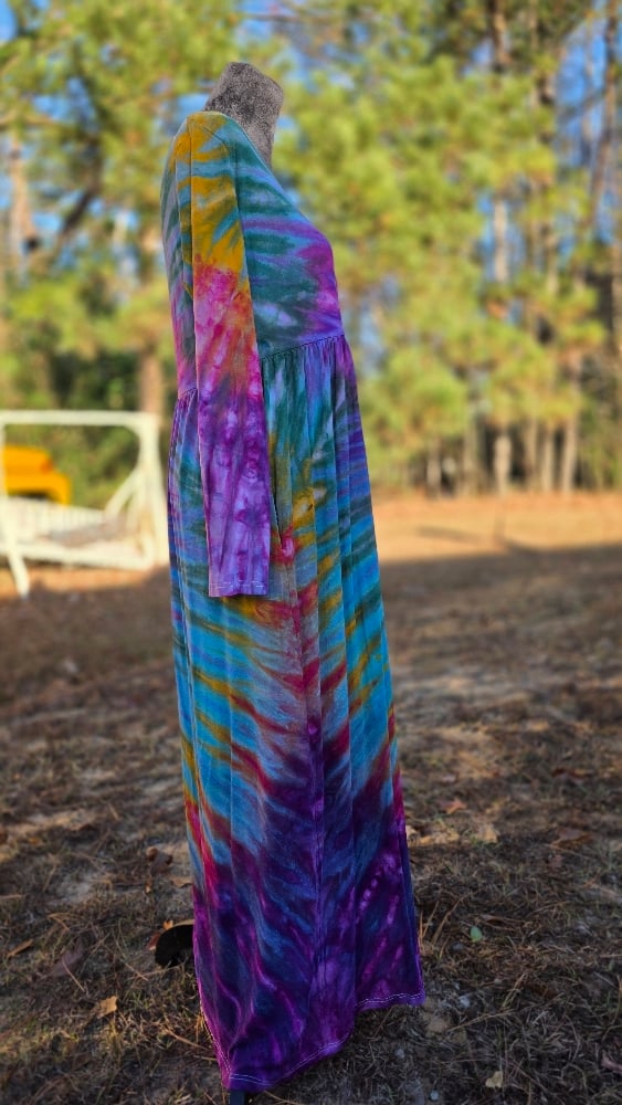Cut from a buttery-soft rayon/spandex blend, this long sleeve maxi moves like liquid color. The fitted bodice gives way to a flowing, full-length skirt that drapes and sways with every step, offering both comfort and drama. It’s a piece made for presence—for being seen, felt, and remembered.