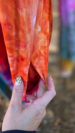 Untamed and blooming in full color, Dahlia is a wild riot of petal and flame. Hand-dyed in sweeping currents of magenta, violet, molten gold, deep teal, and stormy blue, the pattern twists and radiates with organic intensity—like a flower opening under a charged sky. Bold, expressive, and unapologetically alive.