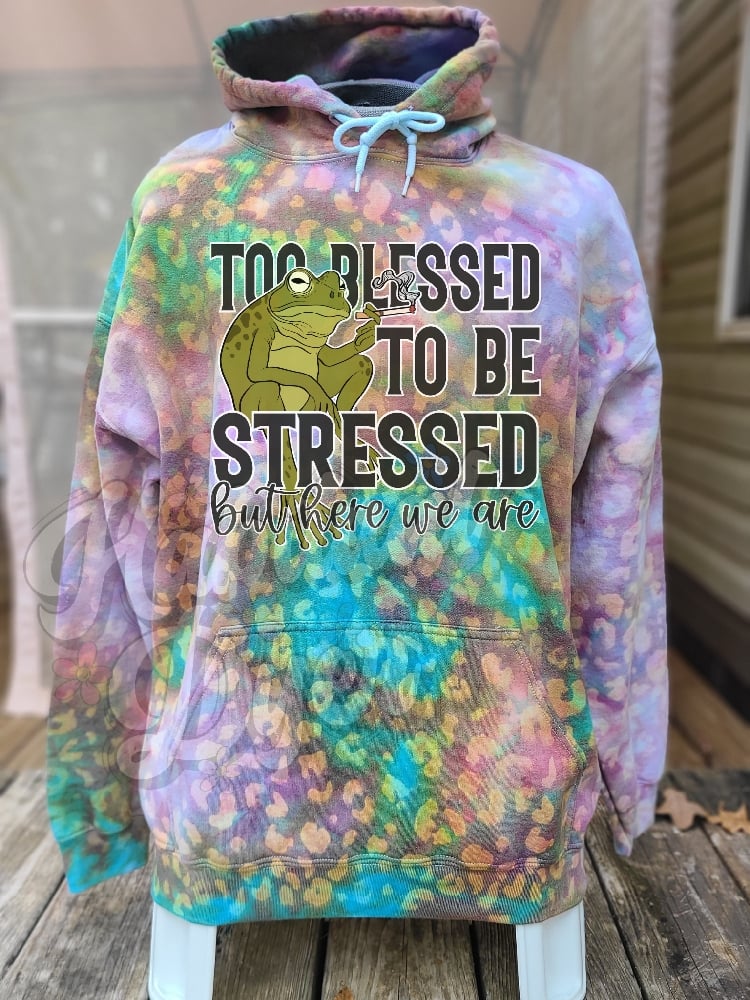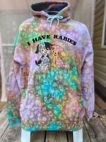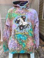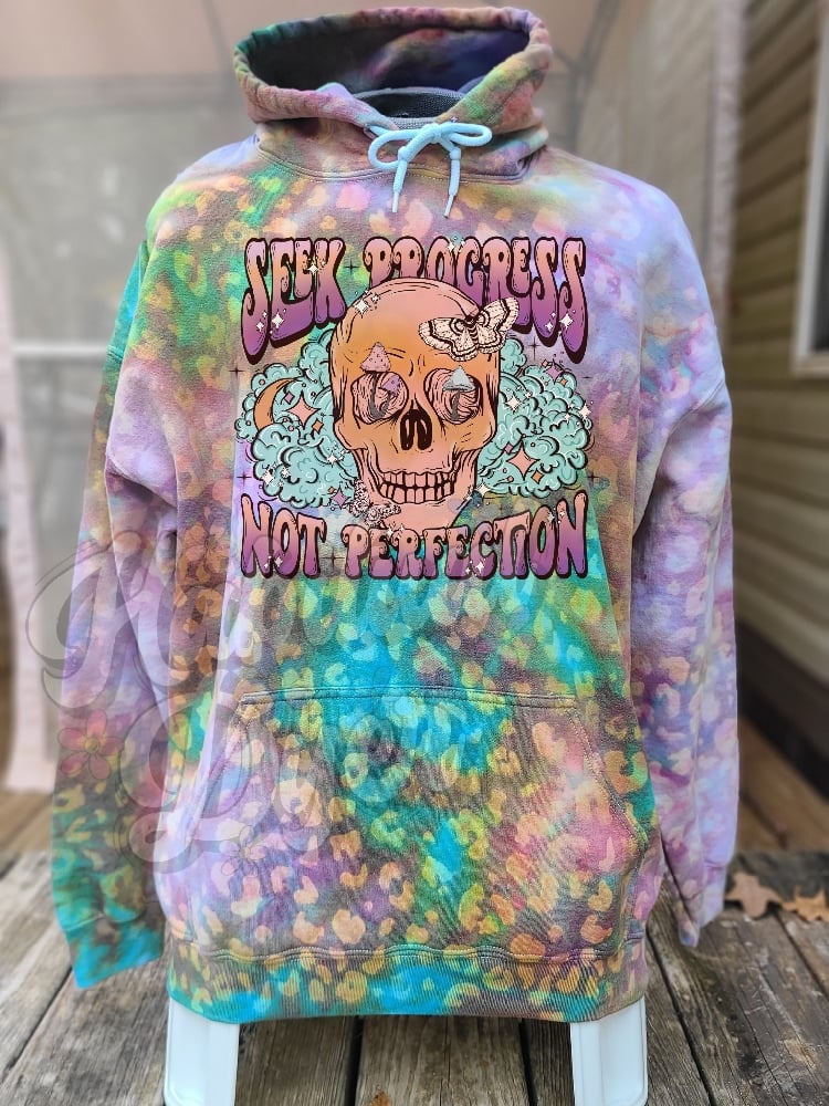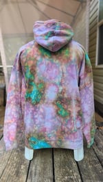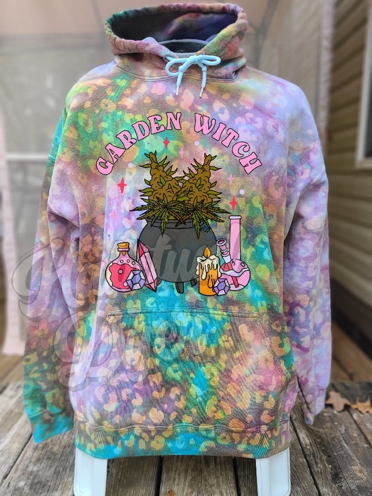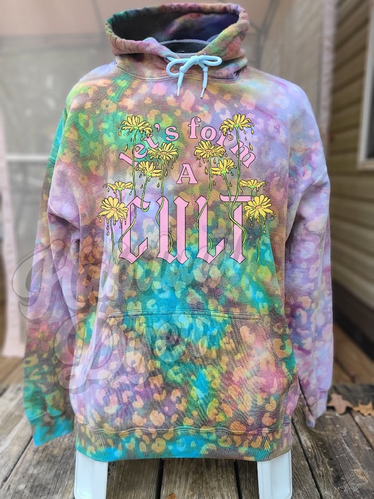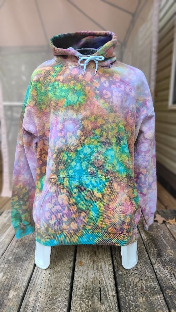 Unisex XL 50/50 polycotton blend hoodie, ice dyed then stencil bleached. Keep it plain or pick a print!