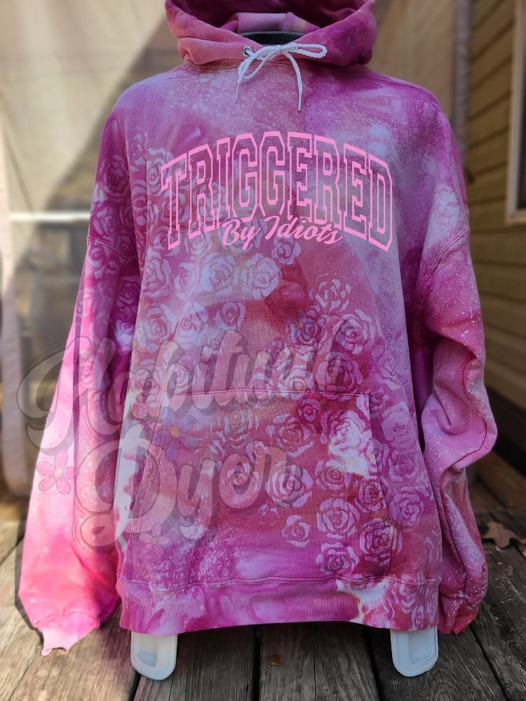 Unisex 3X 50/50 polycotton blend hoodie, ice dyed then stencil bleached. Keep it plain or pick a print!