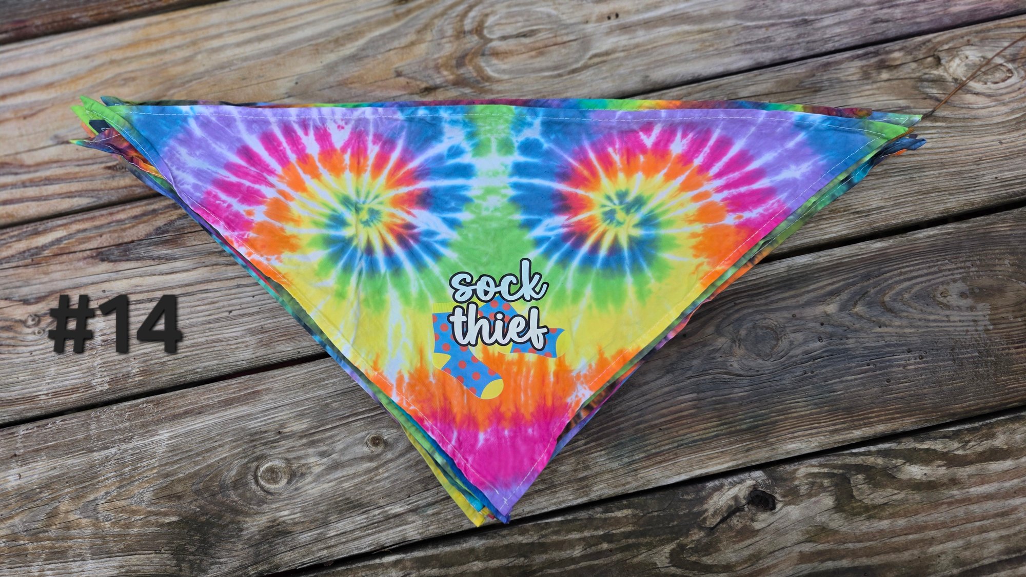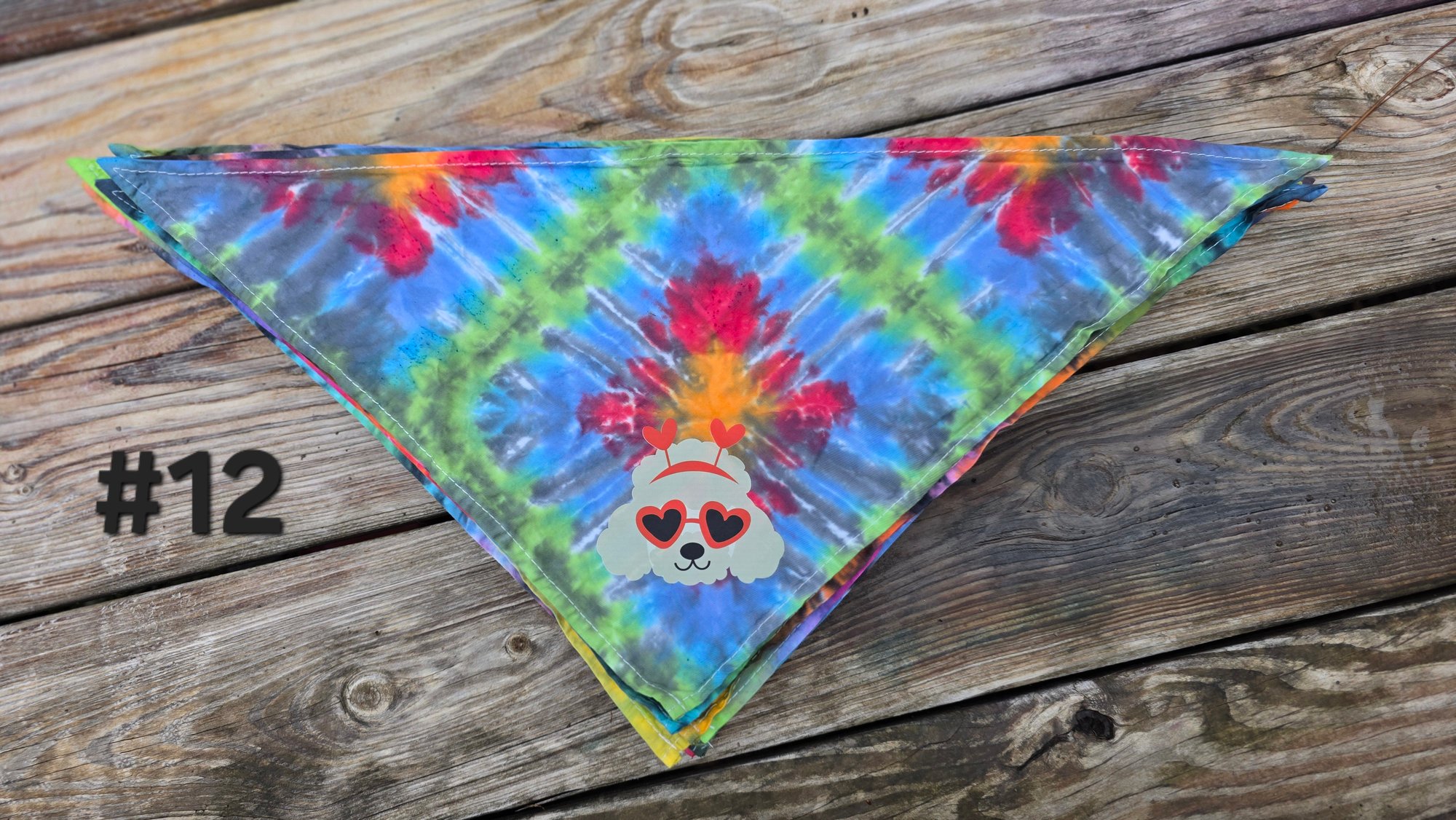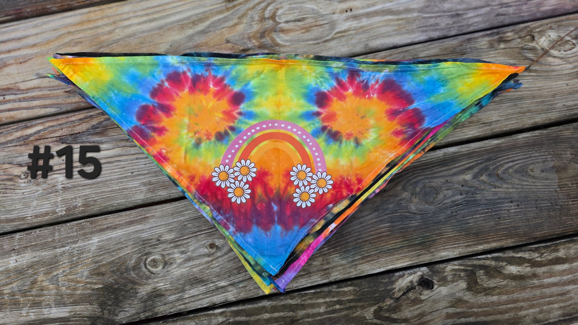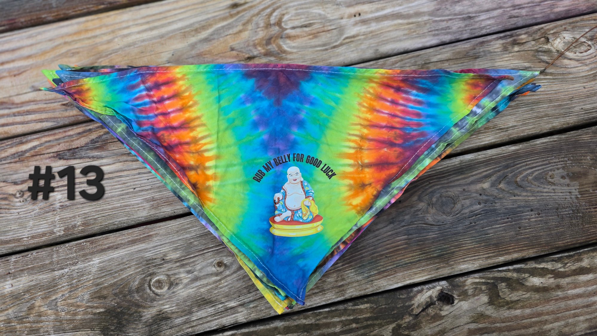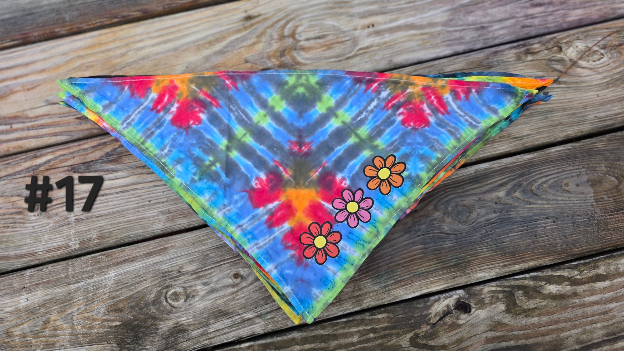 Bandanas measure 24 inches across. Numbers are listed on each photo. Select the number of the one you want in the drop-down box.