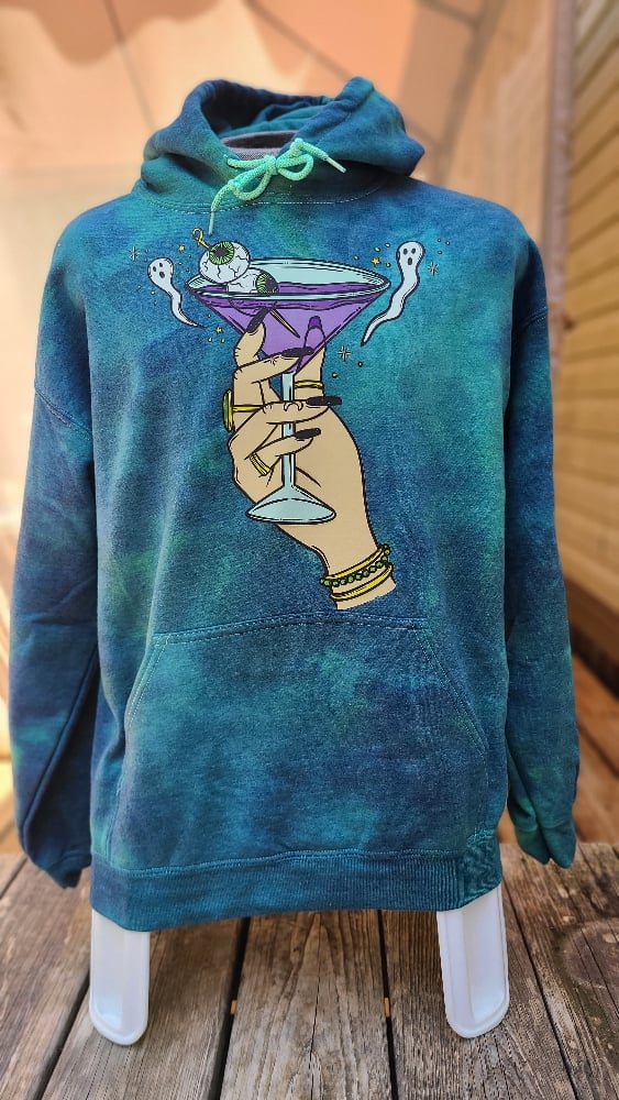 Gildan 50/50 polycotton blend hoodie, Unisex Large; Wash inside out. Tumble dry low.