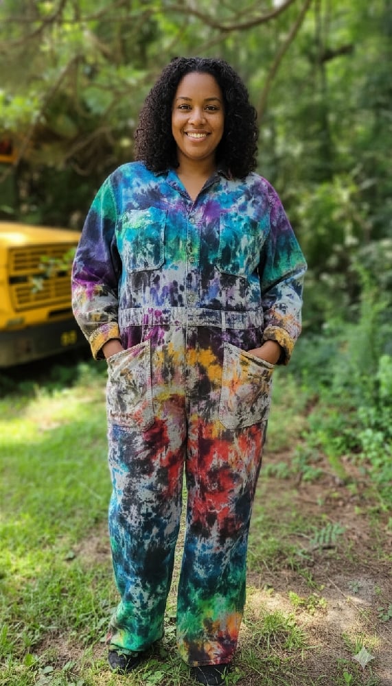 In The Paint is a wearable masterpiece—bold, expressive, and bursting with color like an artist’s palette gone rogue. This baggy-fit Universal Thread denim jumpsuit is splashed with vivid strokes of turquoise, flame orange, violet, lemon yellow, scarlet, and jet black—each one telling its own story in motion.