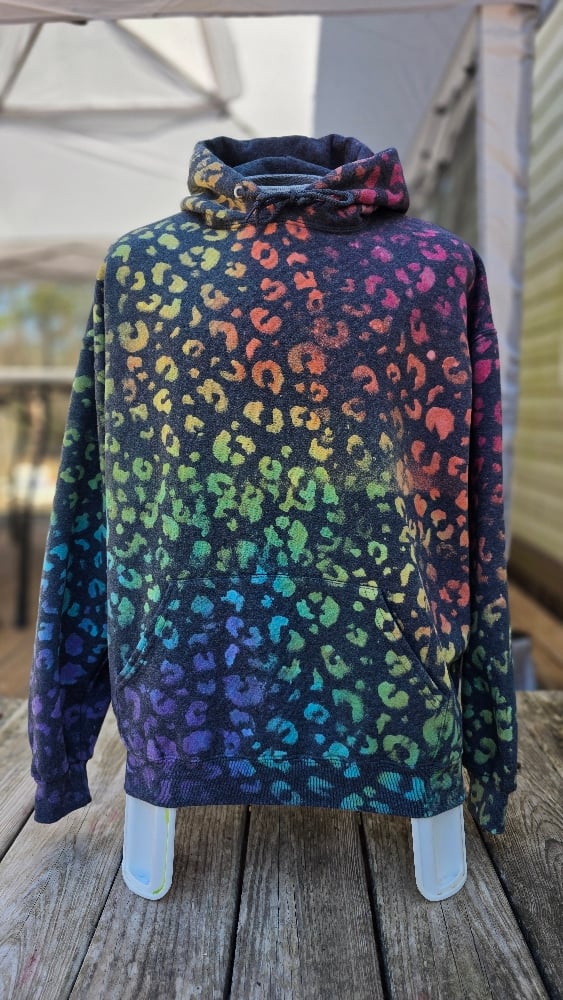 This listing is for preorders of rainbow leopard print crewnecks, hoodies, and full-zips. An example can be seen in the second photo. They will come dyed in rainbow colors, but if you prefer it with no dye or different colors, just include it in the notes at checkout, email me, or message me on facebook!