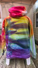 Built on a premium oversized hoodie blank, this piece delivers heavyweight comfort with a relaxed, roomy fit through the body and sleeves. The plush hood and classic kangaroo pocket make it an easy grab for everyday wear, while the bold dye work transforms it into a wearable statement. Equal parts cozy and electric.