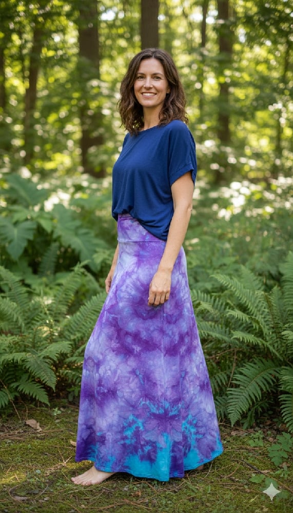 The tie-dye washes of violet and aqua shift like an otherworldly sky, bringing a touch of magic to every step. Lightweight and breathable, this skirt is as practical as it is enchanting—perfect for casual strolls, dressed-up evenings, or dancing under the stars.