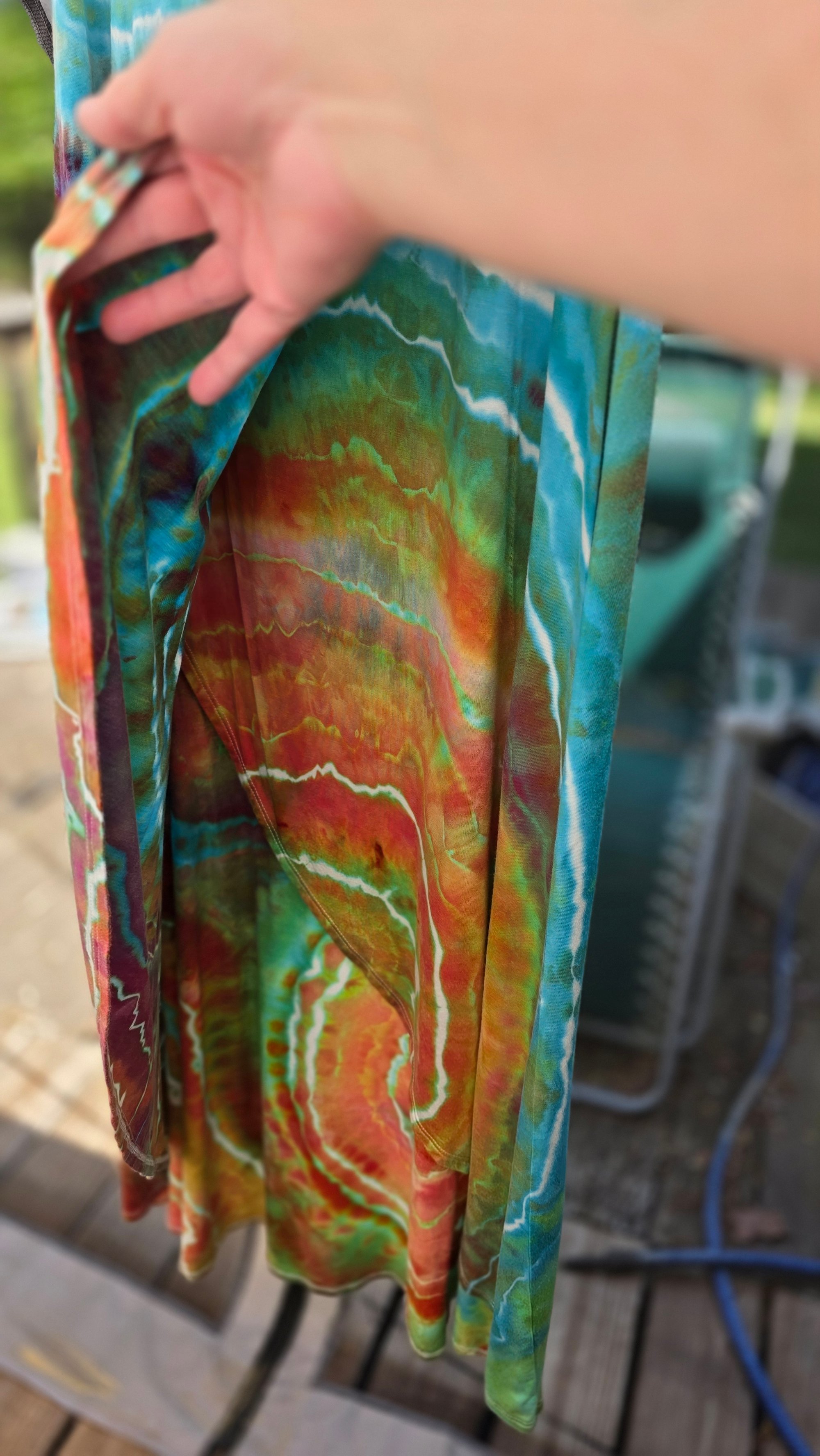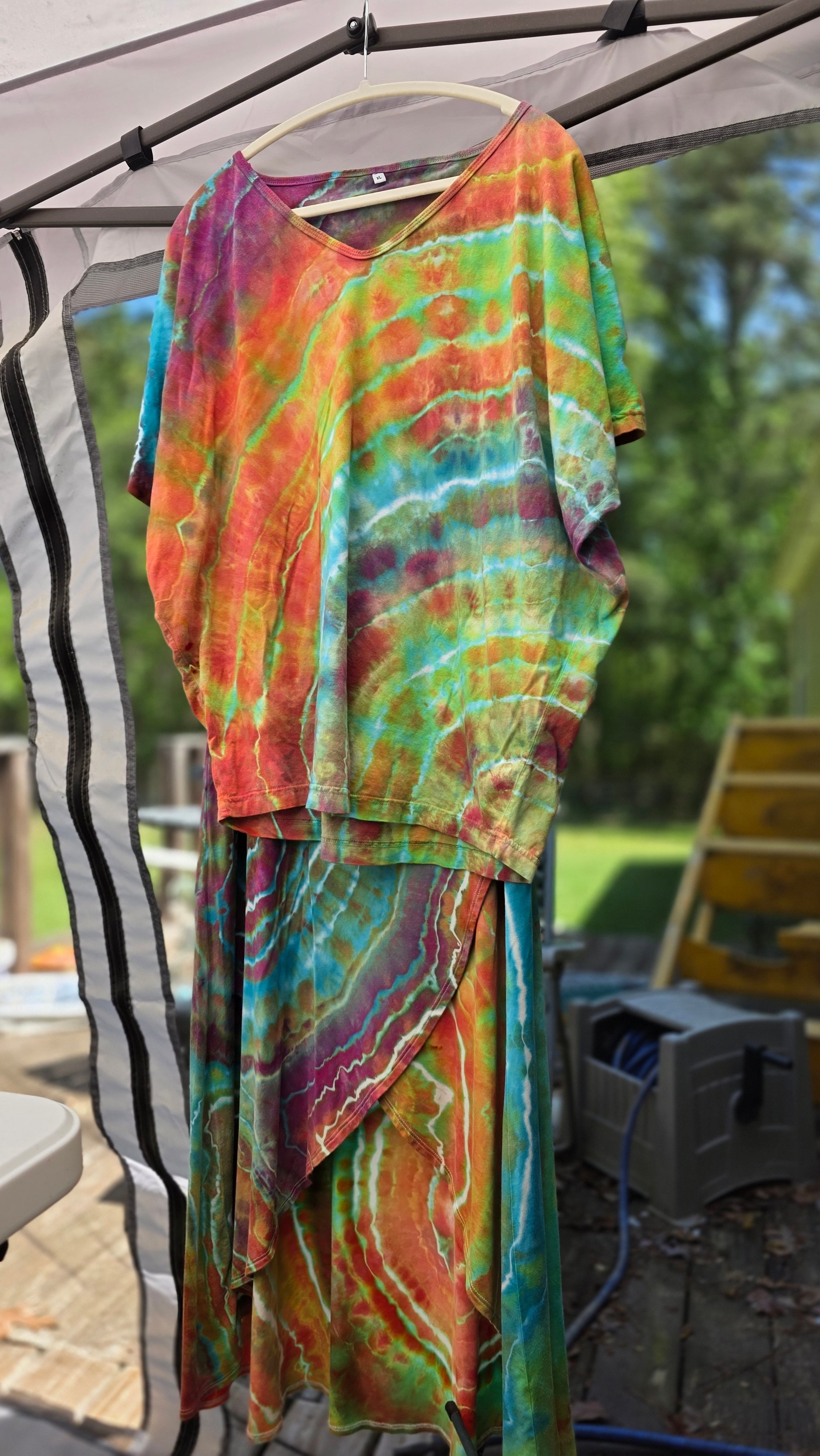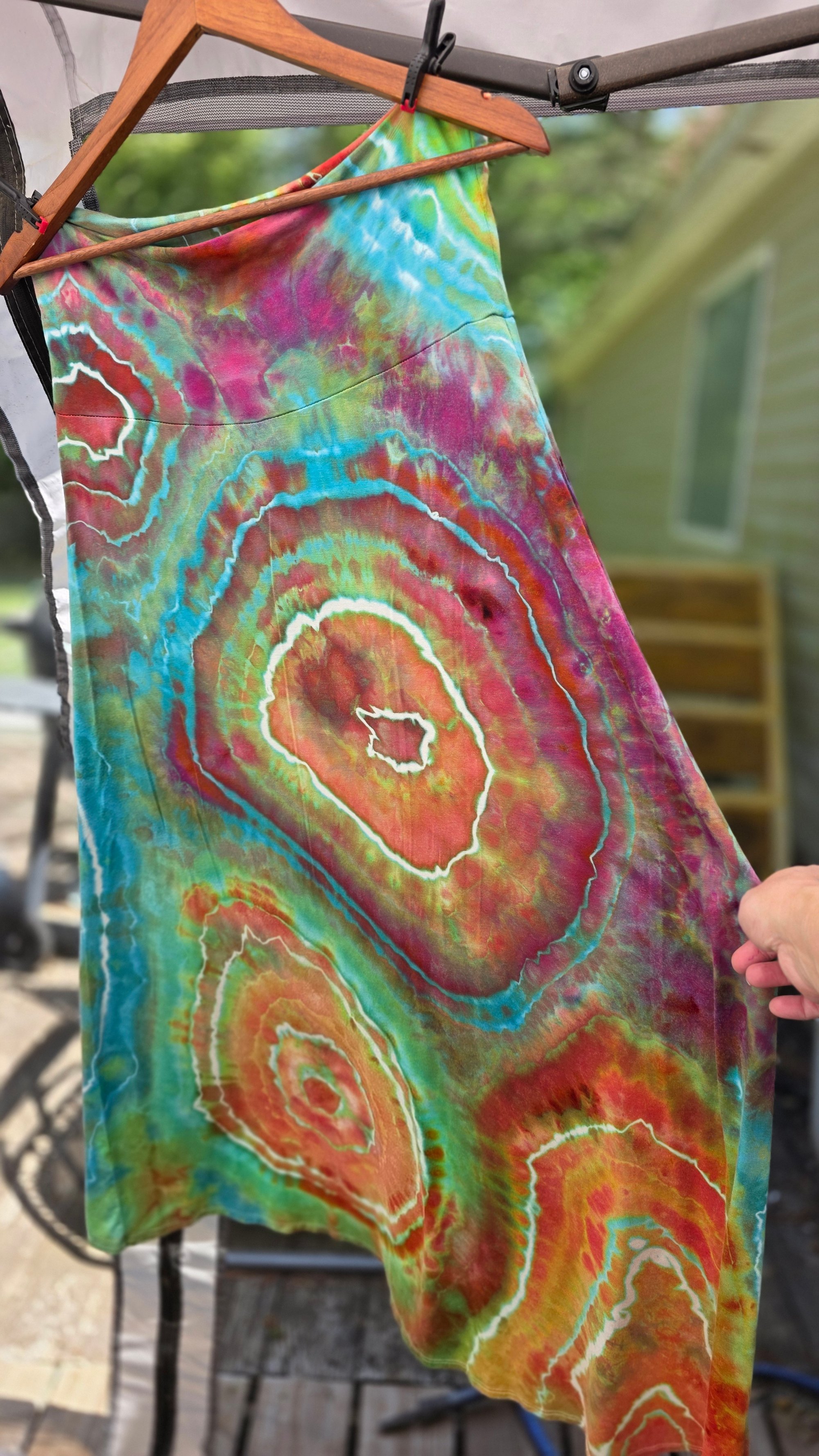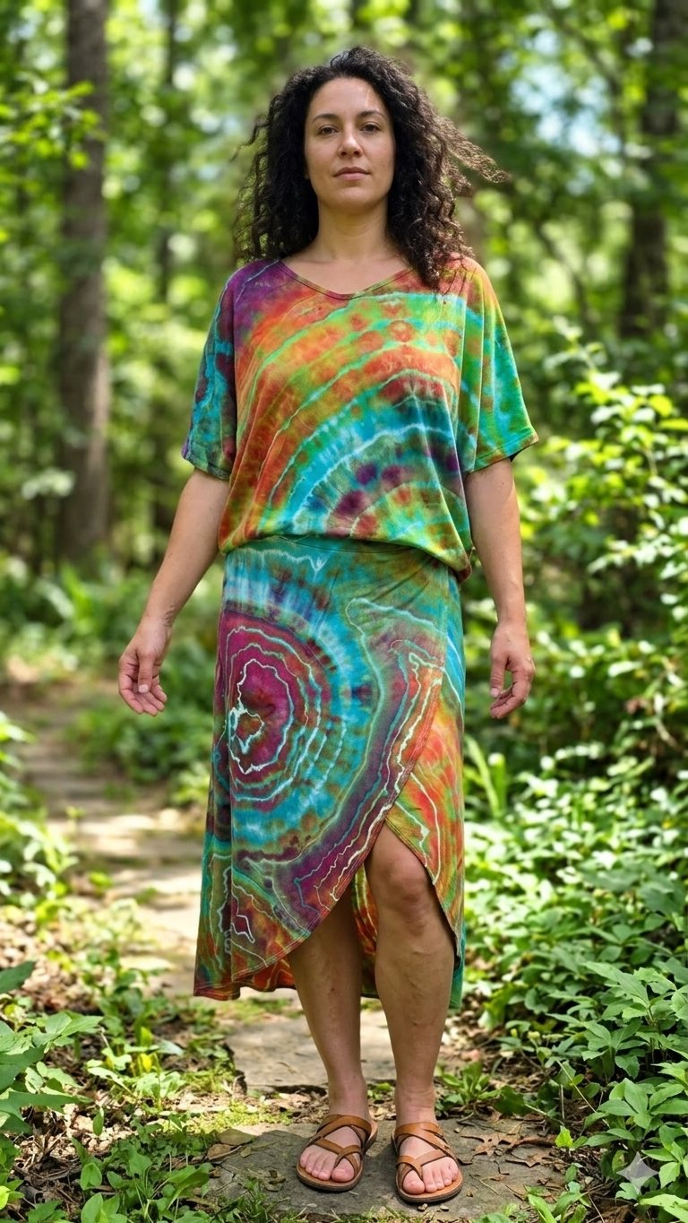 Effortless movement meets bold design. This skirt features a unique faux-wrap, crossover silhouette that creates a beautiful drape and showcases the complex tie-dye patterns from every angle.