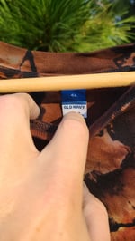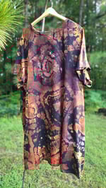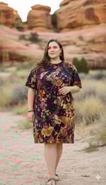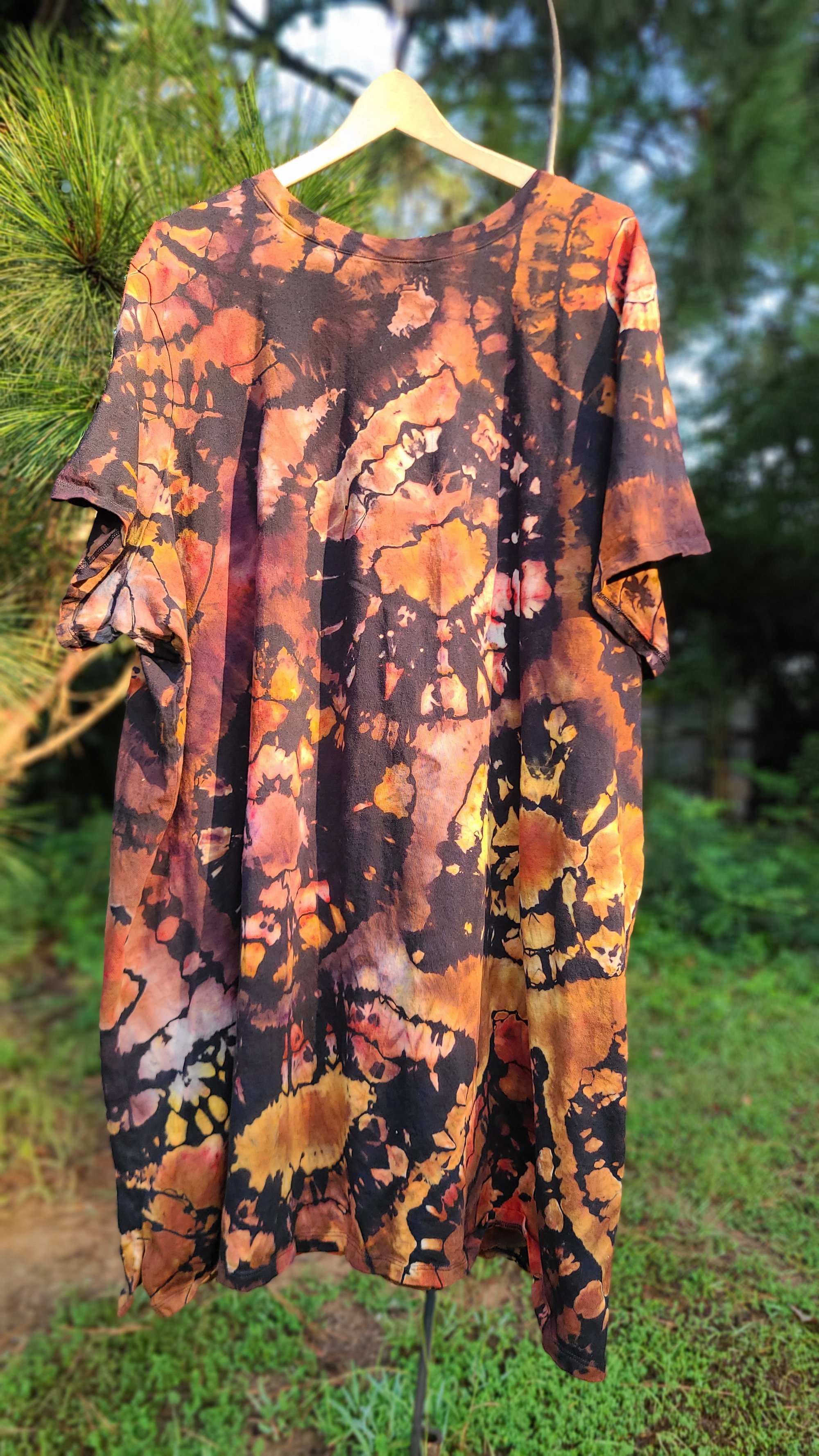 Ignite your inner warmth with Raw Citrine, a one-of-a-kind, vintage Old Navy crew-neck mini dress flaring with molten amber, ember orange, and streaks of smoky black in a fiery geode spiral. This piece radiates sunlit energy, autumnal charm, and bold confidence.