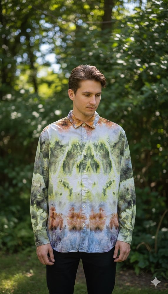 Embrace an organic, lived-in aesthetic with the Redwood Forest button-down. This piece merges the structured heritage of a classic long-sleeve shirt with a contemporary, relaxed silhouette, featuring a unique earth-toned wash inspired by the deep textures of the forest floor.