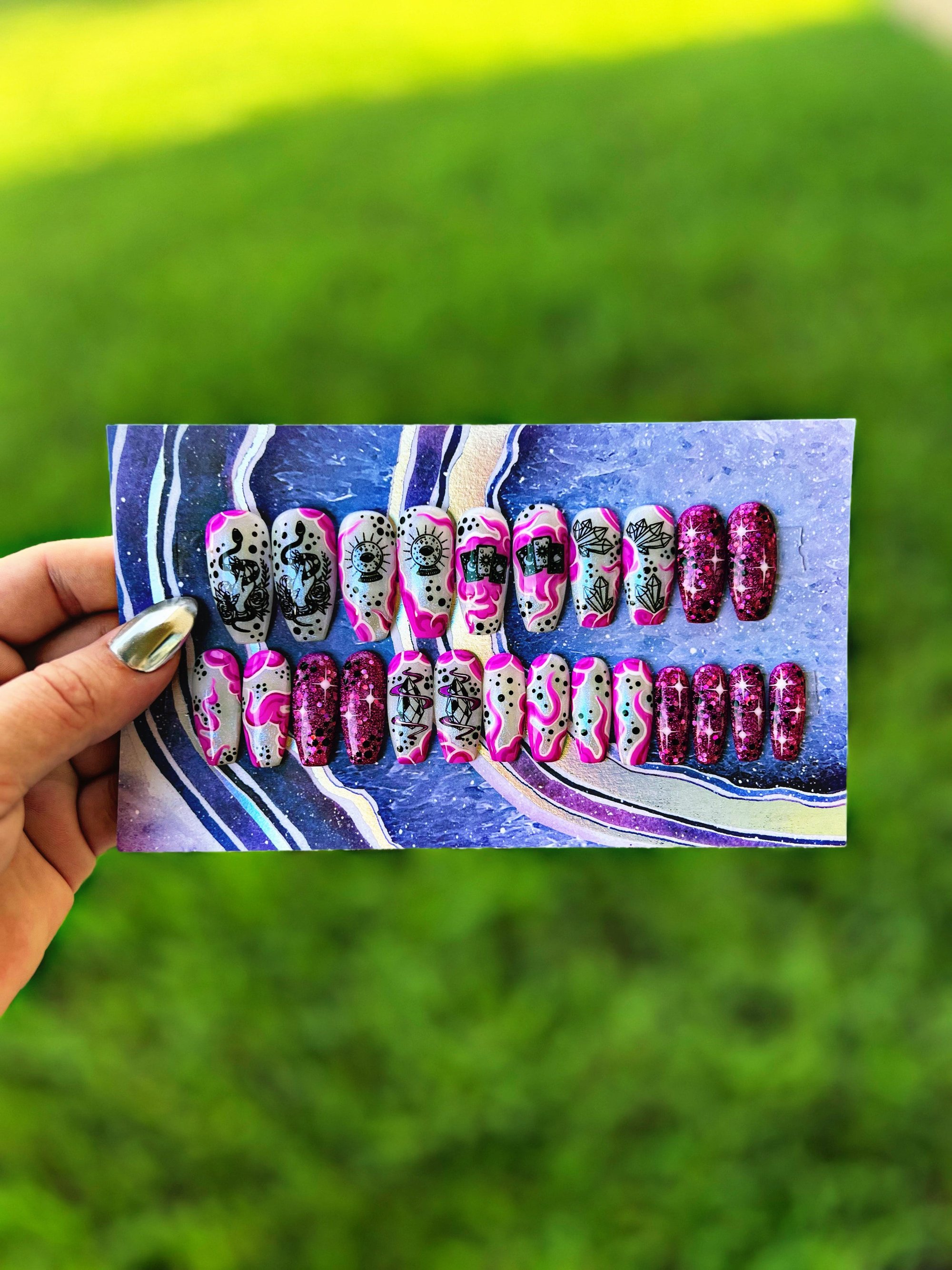 π Pssst, wanna add some witchy sparkle to match? Check out the last photo β¨οΈ AweSam Nails has a stunning 24 piece one size fits most all gel press-on set that would add a stunning special touchππΌAdded bonus: They are removable and reusable, so you can wear them with anything else that tickles your fancy π Check em out here: