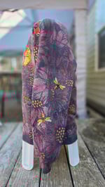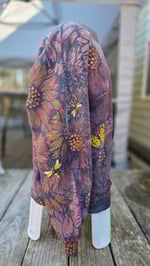 This sweatshirt was stencil bleached, ice dyed, handpainted with fabric paint, and then adorned with vintage butterflies on the front, bumblebees on the sleeves, and a roaring twenties lady butterfly on the back!